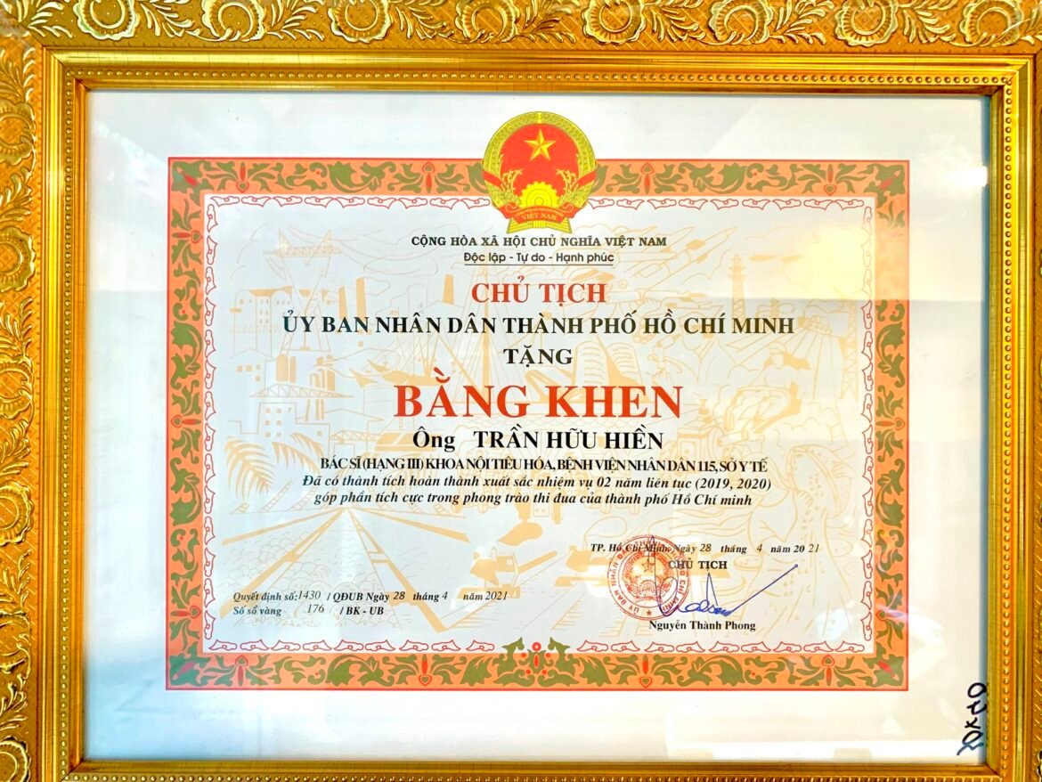 Năm 2020 BS Hiền vinh dự nhận được bằng khen chiến sĩ thi đua của Uỷ Ban Nhân Dân TP. Hồ Chí Minh