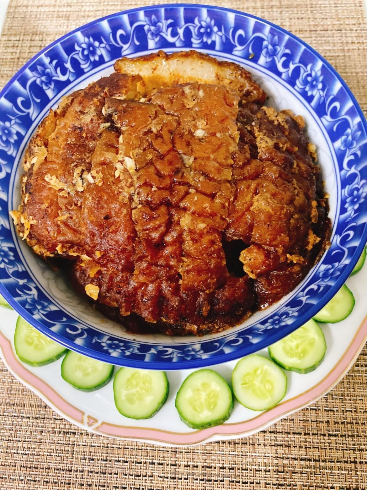 Hôm nay cô nhờ người nhà ở Sài Gòn làm món khâu nhục biếu BS, là đặc sản người Hoa ăn vào dịp đặc biệt, khâu là hấp rục, nhục là thịt. Người Trung Quốc, đặc biệt là người Quảng Đông coi khâu nhục là món ăn dân dã nhưng lại mang ý nghĩa tinh thần rất lớn, cách bài trí miếng thịt lên đĩa theo hình dạng một quả đồi nhỏ đang nhô cao thể hiện ý chí và sự lớn mạnh trong tương lai. Do đó, đây là món ăn gần như không thể thiếu trong các ngày lễ quan trọng của cộng đồng dân tộc Tày-Nùng hay người Hoa ở Sài Gòn.