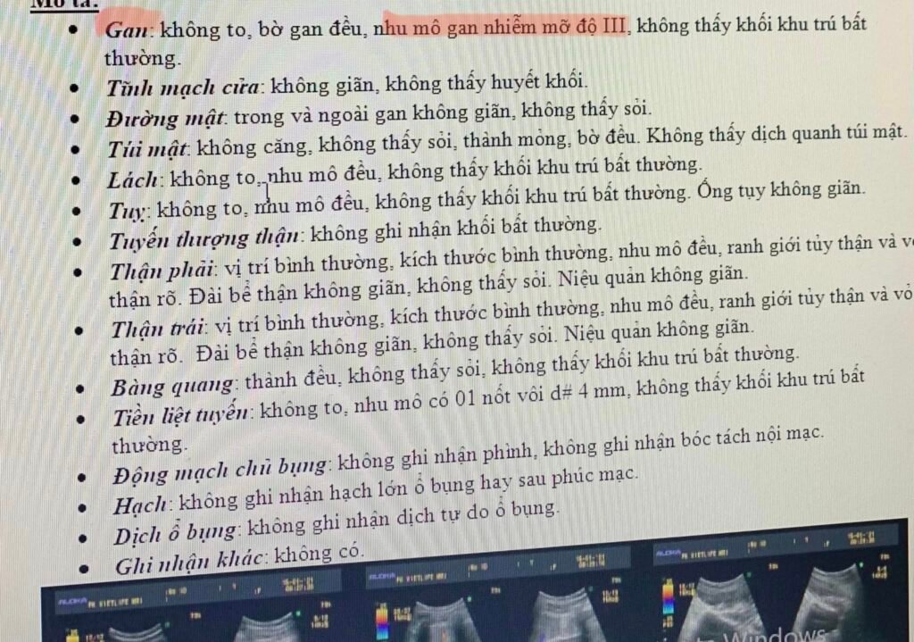 Sau khi dùng chế độ giảm tinh bột (mỗi bữa 4 chén cơm giảm còn 2 chén) và phác đồ gan nhiễm mỡ (bệnh nhân này chúng tôi không cho thuốc đái tháo đường) bệnh nhân giảm được 10kg trong 9 tháng. Người nhẹ kiểm tra lại siêu âm không còn hình ảnh nhiễm mỡ. HbA1C về mức 6,5%. Bệnh nhân rất vui mừng.