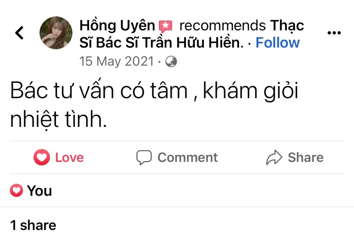 Phản hồi từ bệnh nhân Phản hồi tích cực từ fanpage ThS BS Trần Hữu Hiền by hienbacsi 15 Tháng Năm, 2023 written by hienbacsi 15 Tháng Năm, 2023 bác sĩ Trần Hữu Hiềnphản hồi từ bệnh nhân 0 comment 0 FacebookTwitterPinterestEmail hienbacsi previous post Hiểu sao cho đúng từ college trong các hiệp hội y học. next post Bệnh nhân nam >60t đái tháo đường điều trị thành công bs Hiền đọc thơ cho nghe You may also like Mực một nắng đặc sản Phú Quốc 31 Tháng Năm, 2023 Điều hạnh phúc nhất của BS Hiền –... 12 Tháng Hai, 2023 Xuất huyết tiêu hoa dưới do xạ trị... 10 Tháng Hai, 2023 Đồng nghiệp cảm ơn 7 Tháng Hai, 2023 Bệnh nhân xơ gan ói máu uống đúng... 19 Tháng Một, 2023 Cuối năm 2022 nhận được quà cảm ơn... 6 Tháng Một, 2023 Những phản hồi tích cực từ bệnh nhân... 30 Tháng Mười Một, 2022 Ngày mới chia sẻ những điều tích cực!! 30 Tháng Mười Một, 2022 Leave a Comment Cancel Reply Save my name, email, and website in this browser for the next time I comment.