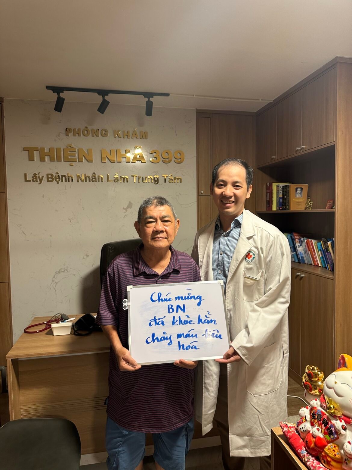 Sau khi gặp chúng tôi, Chúng tôi đã đưa ra phác đồ điều trị viêm trực tràng sau xạ trị. bệnh nhân đã ngưng chảy máu, Da dẻ hồng hào trở lại, ăn uống khá, lên cân. Chú và vợ chú rất vui thường hay kể chuyện của bác sĩ với gia đình họ hàng người thân khắp nơi.
